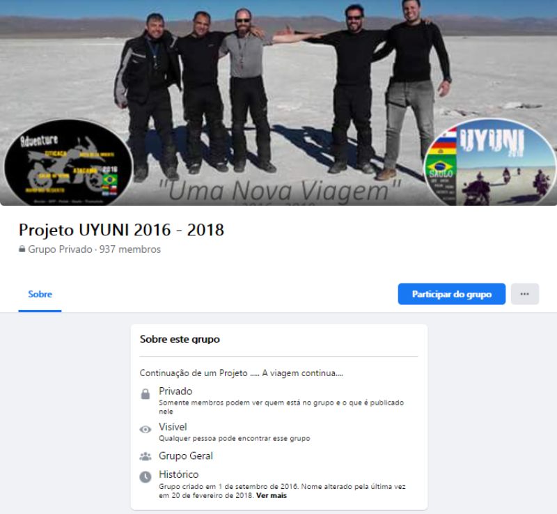 Relato de uma viagem de moto idealizada por cinco amigos em 2016, passando pelo Paraguai, Argentina, Chile e Bolívia, com destino Principal o maior deserto de sal do mundo, o Salar de Uyuni, com passagens pelo Atacama, Lago Titicaca e a tão famosa Ruta de La Muerte. Mas imprevistos acontecem, tivemos uma grande perca interrompendo nossa viagem.